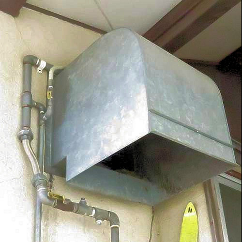 図1. ゴジュウカラの巣穴(左)と換気扇フード(右).